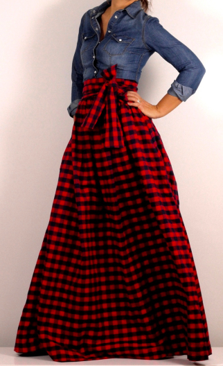 Дълга романтична рокля в тъмен деним с акцентираща бродерия