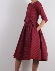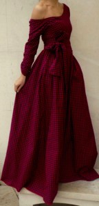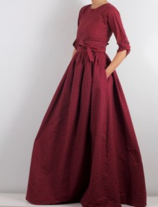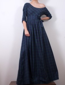Дълга рокля от топла бархетна материя в вече познатото ни каре в зелено и синьо:)