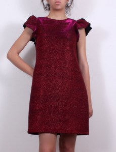 Къса рокля в червен меланж с блясък