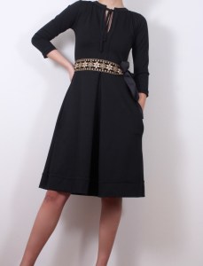 Класическа черна рокля с акцентиращ колан и ширит