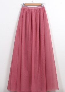 Дълга тюлена пола в ябълково розово и дантелена блуза в пудрен цвят