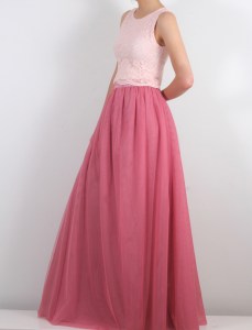 Дълга тюлена пола в ябълково розово и дантелена блуза в пудрен цвят