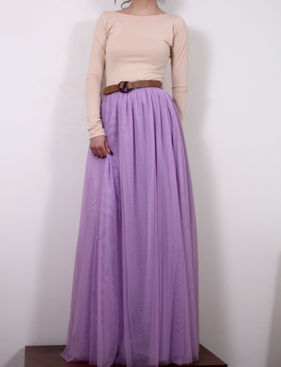 Дълга тюлена пола в нежен лавандулов цвят