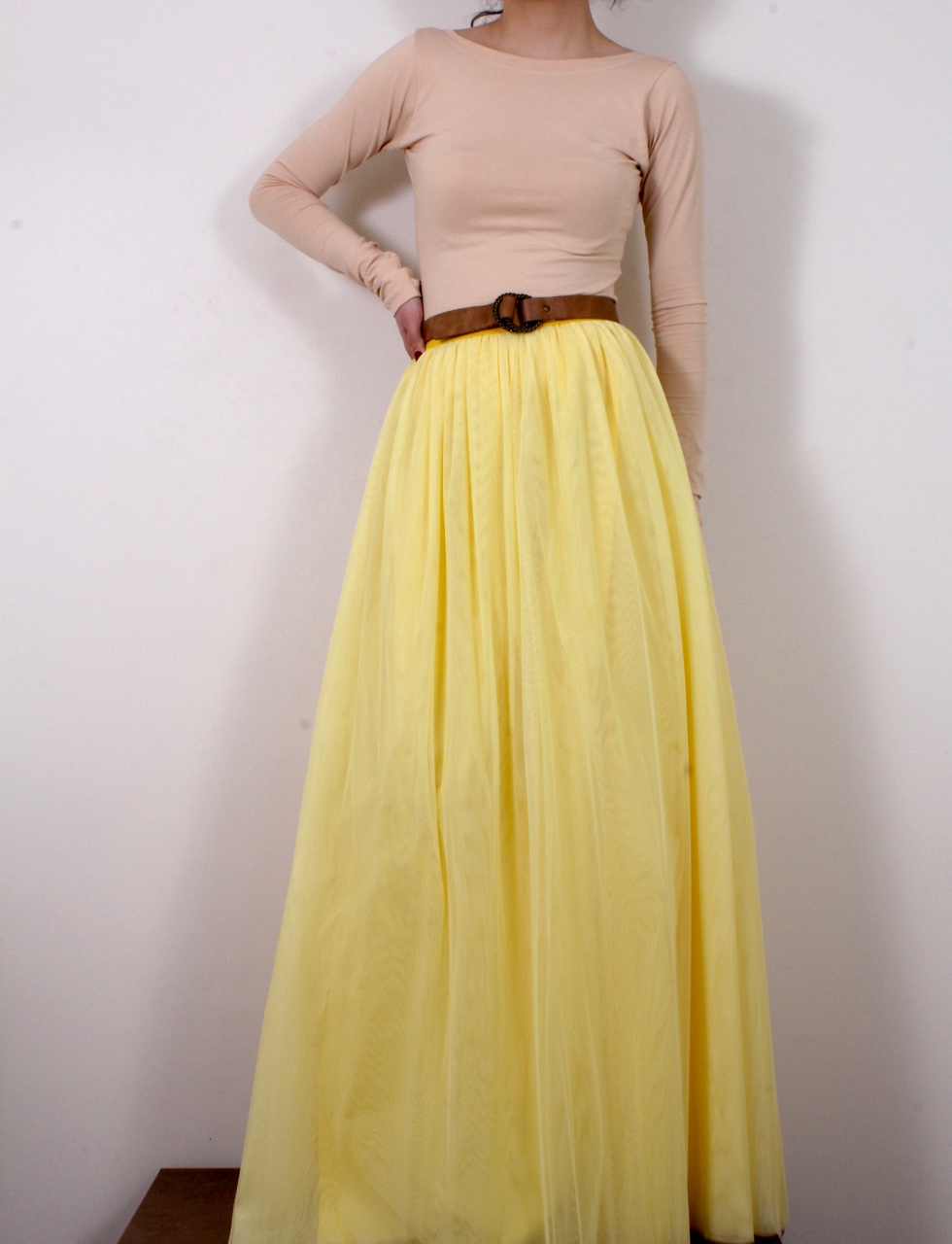 Дълга тюлена пола в слънчево жълто