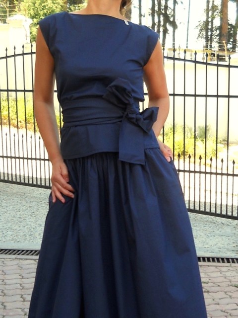 Сет от две части: дълга памучна пола и асиметрична блуза в тъмносин цвят