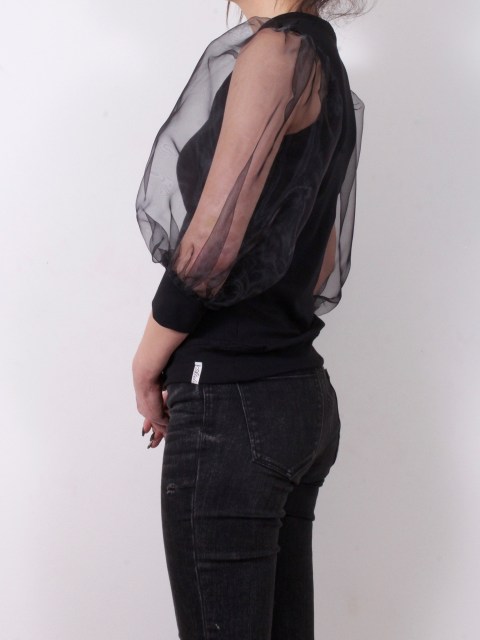 Блуза в черно с буфан ръкави от органза