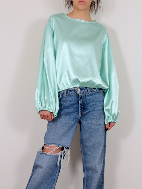 Сатенена блуза в нежен ментовозелен цвят