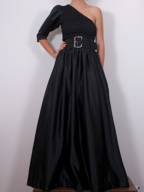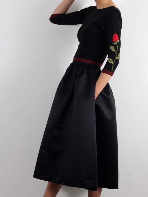 Миди пола в черен плътен сатен