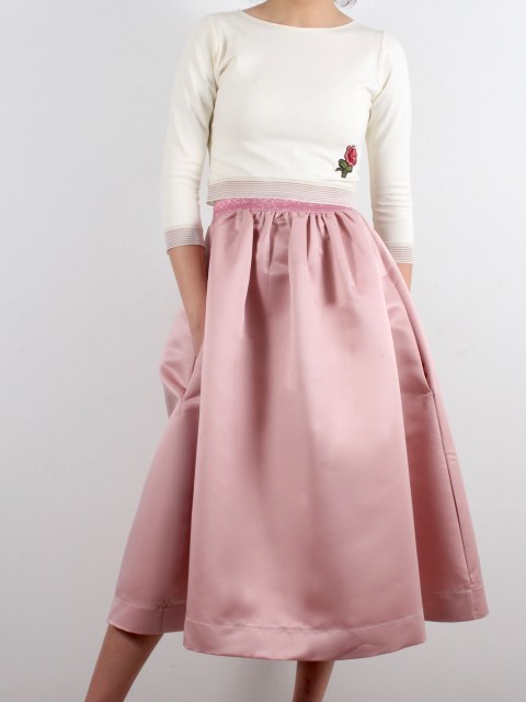 Миди пола в пудрен цвят от плътен сатен