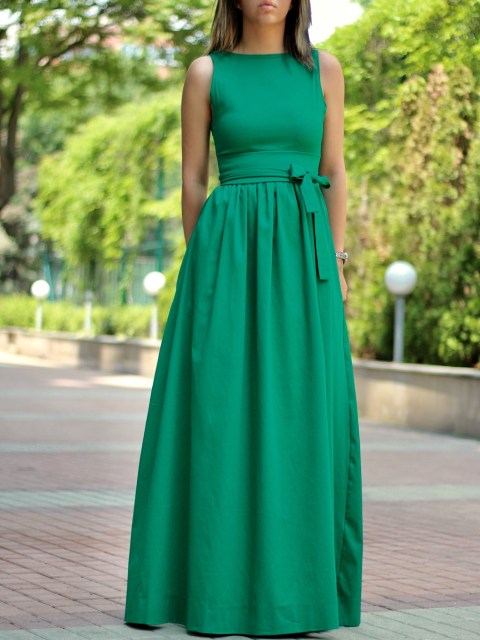 Дълга рокля с изрязан гръб в наситен зелен цвят
