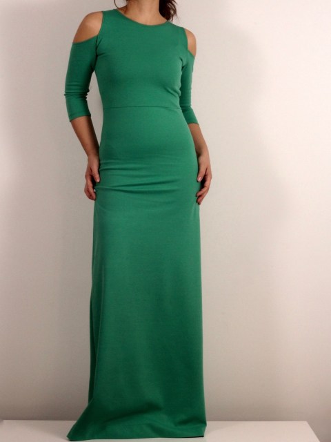 Дълга рокля в класическо черно с изрязан гръб и 3/4 ръкав