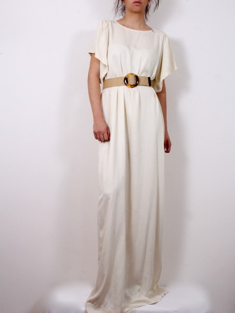 Дълга рокля в свободен силует и ванилов цвят