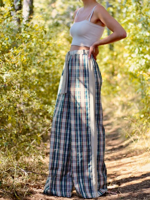 Сет от две части кимоно тип „сако“ и широк панталон в светло каре с кантове