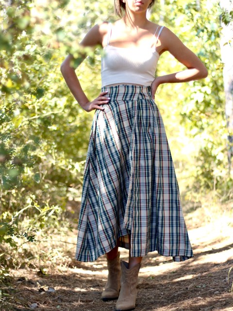 Бархетна дълга рокля в зелено каре и тъмносин фон