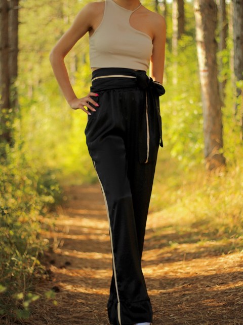 Дълга спортна рокля в черно и контрастни кантове в бежово