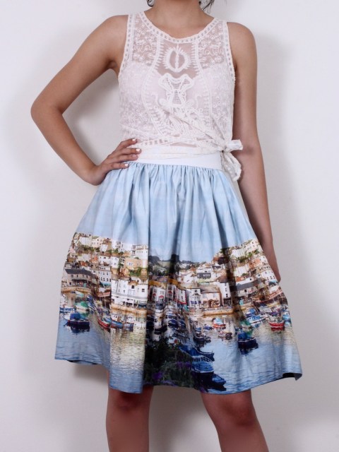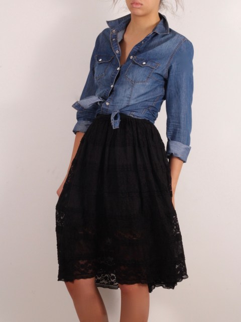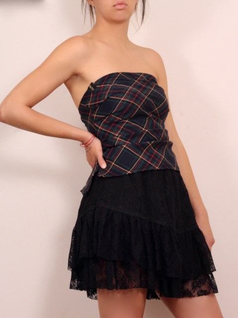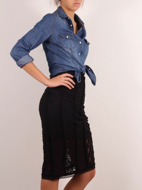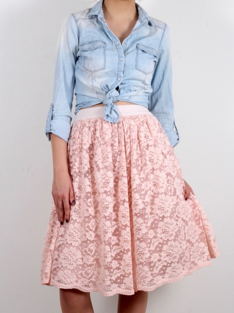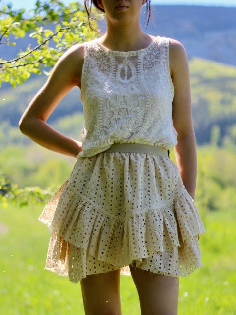 къса пола от рязана дантела с асиметрични волани в бежов цвят