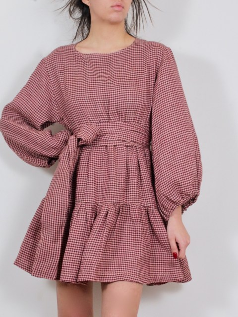 Къса рокля с волан в пастелно каре