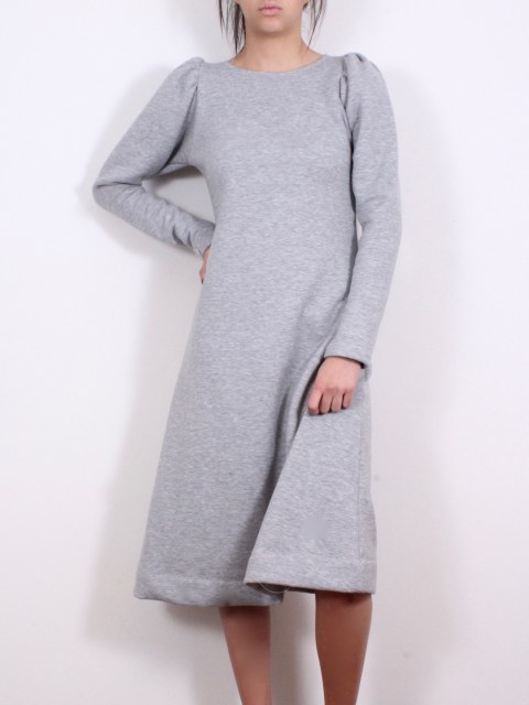 Промоция: Рокля в сив меланж от ватирано трико и миди дължина