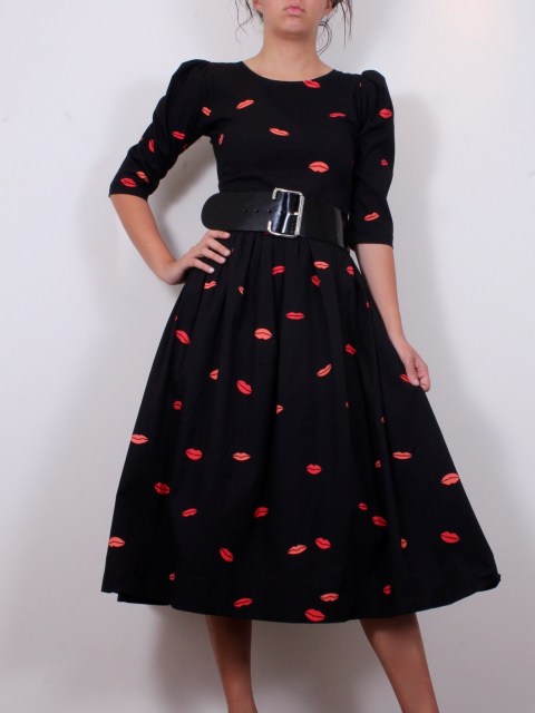 Къса рокля с волани в бохо стил и черно-бял принт на сърца