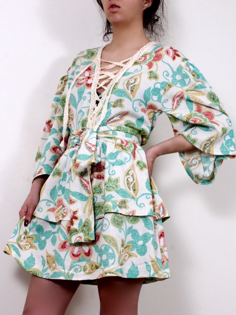Промоция: Къса рокля тип „Прегърни ме“ в етно принт и черен кант