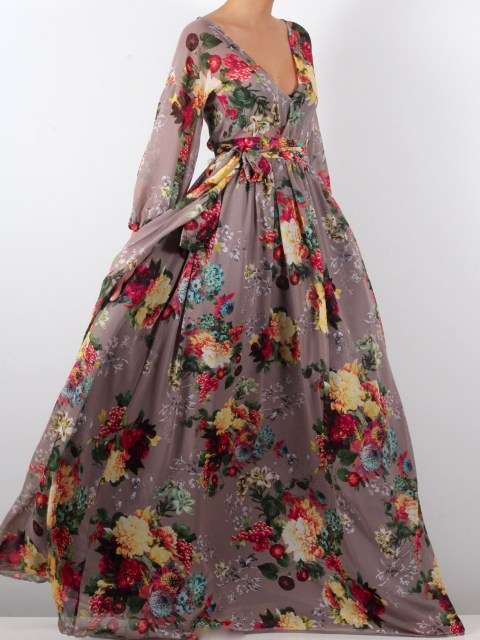 Дълга рокля в коралов цвят с частично изрязан гръб