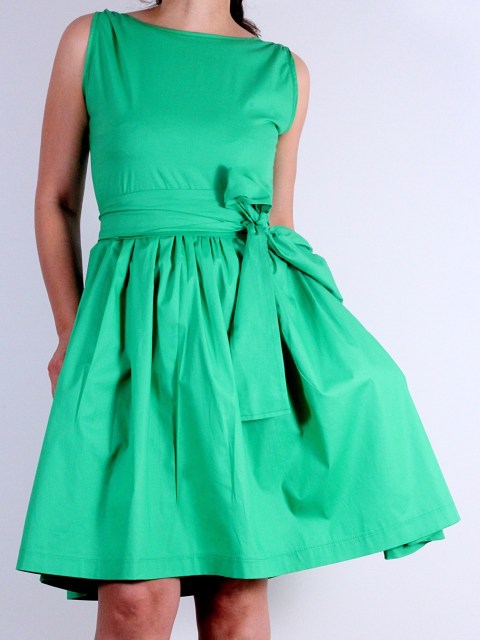 Рокля в зелено с изрязан гръб