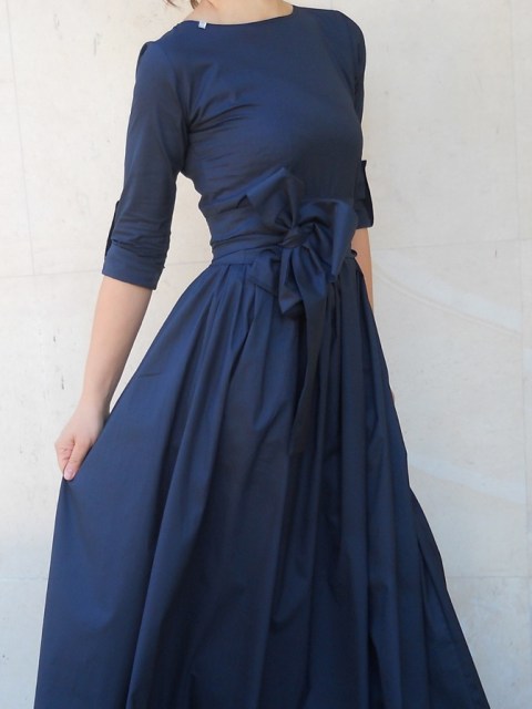 Дълга памучна рокля в тъмносин цвят