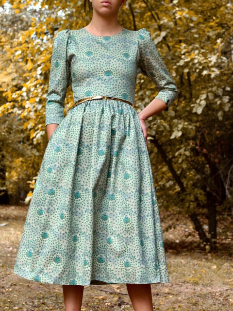 Рокля от фин памук в десен на малки рози