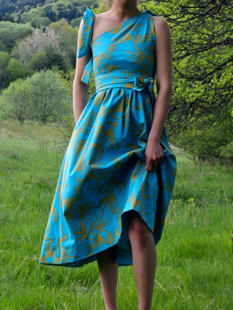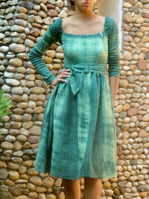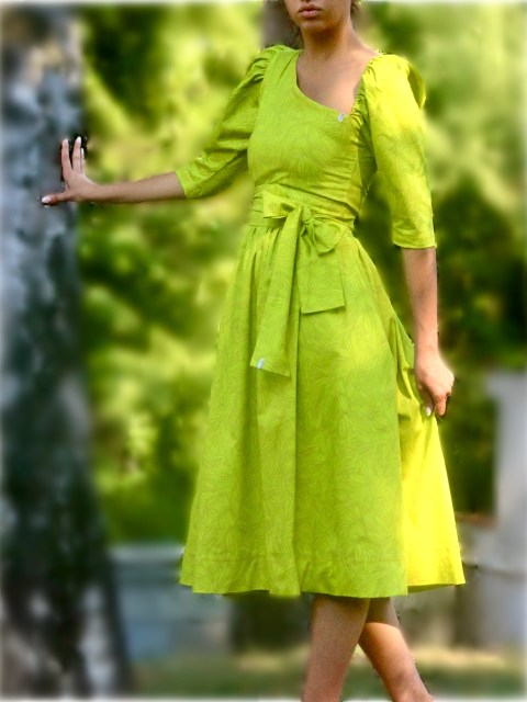 Рокля по тялото от рипсано плетиво в телесен цвят и буфан ръкави