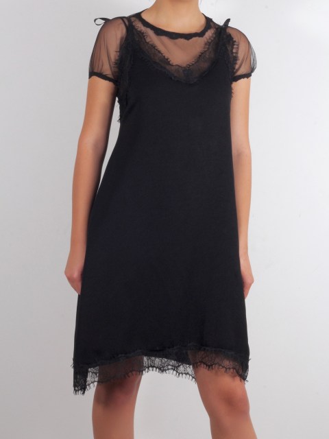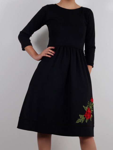 Рокля в черно и акцентираща шевица на цветя
