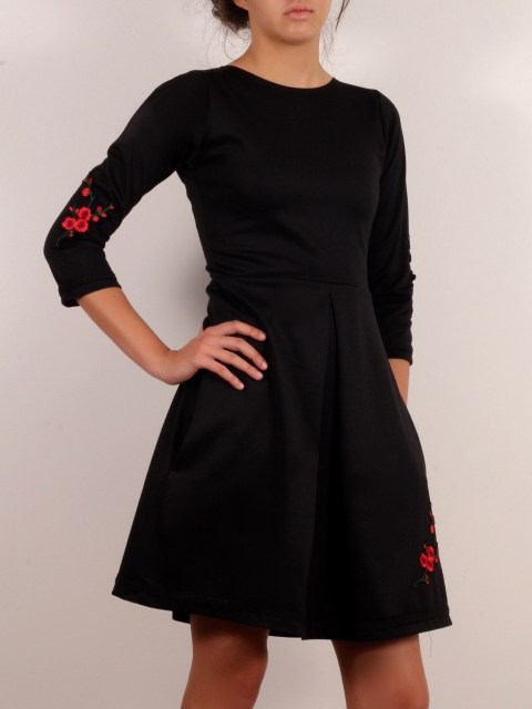 Промоция: Рокля по тялото в черна дантела и бродерия „Цветя“