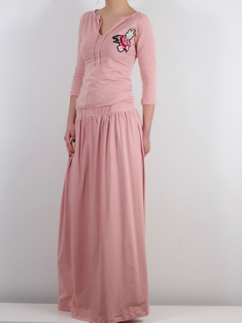Промоция: Дълга спортна рокля в пудрен цвят с бродерия