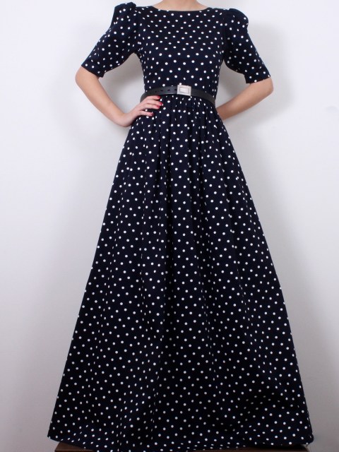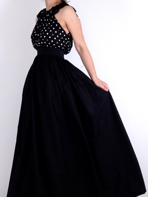 Дълга черна рокля на бели точки с изрязан гръб