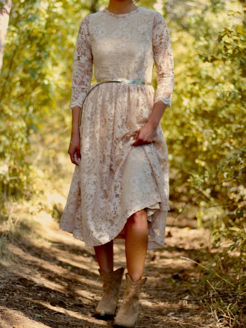 Дантелена къса блуза с изрязан гръб в кафяв цвят