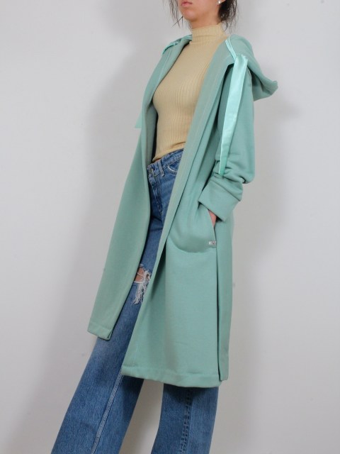 Къс сатенен топ в ментовозелен цвят и бежови бродерии