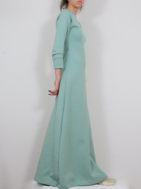 Дълга рокля с къси буфан ръкави в ментовозелен цвят