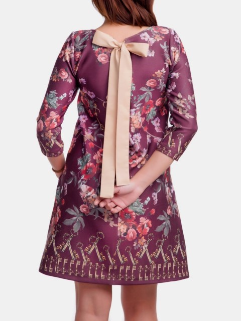 Промоция: Къса рокля в цветен принт „ABC“ с бяла панделка
