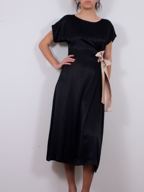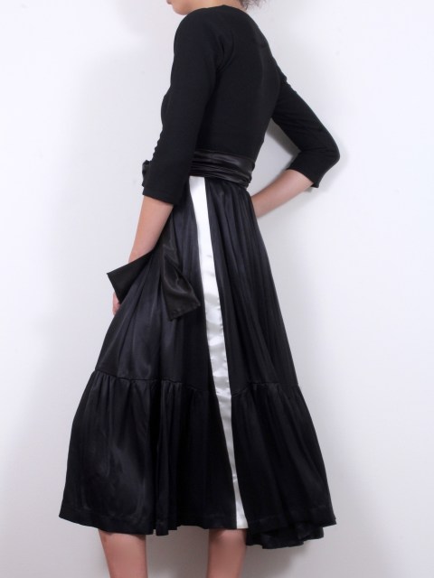 Спортна рокля в бяло с контрастни сатенени кантове в черно