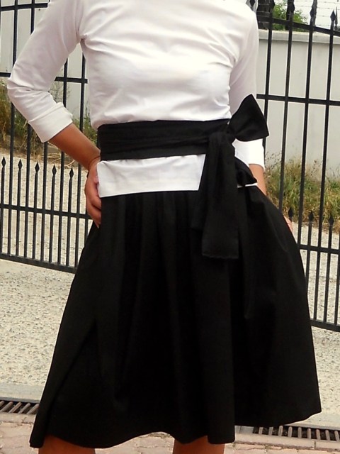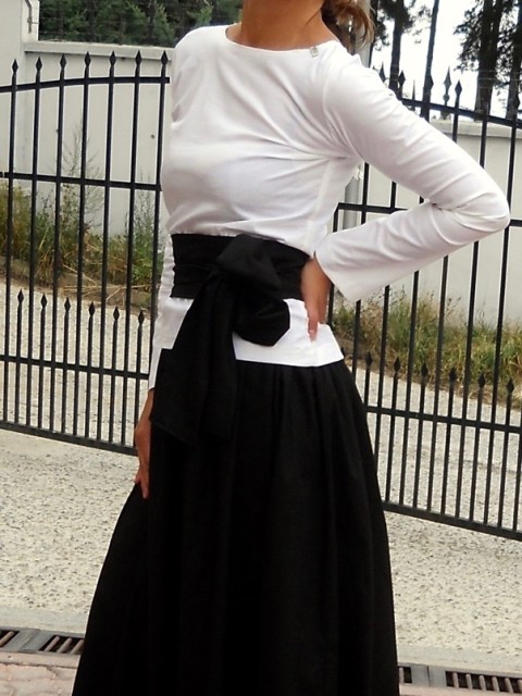 Сет от две части: дълга памучна пола в черен цвят и асиметрична блуза в бял цвят