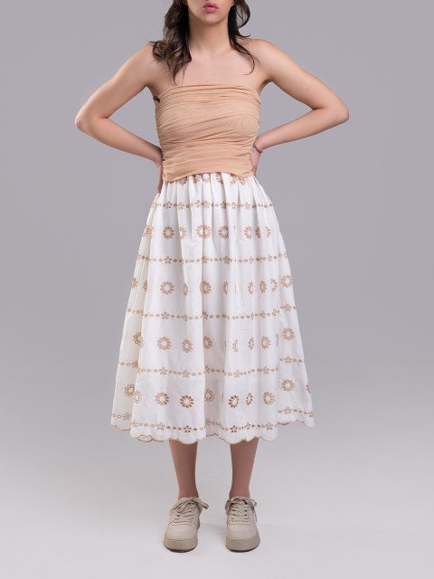 Сет от две части дълга пола и топ в ягодов десен и бял фон