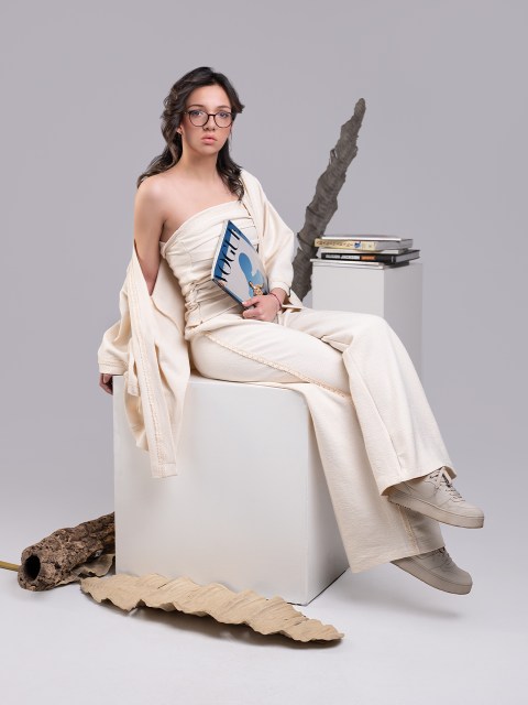 Сет от три части с панталон в цвят ванилия